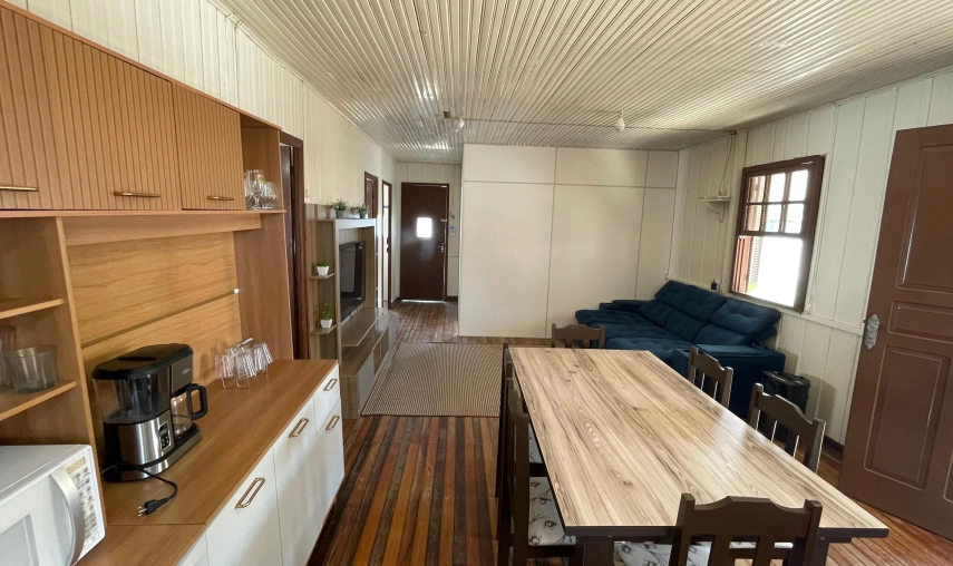 Casa de madeira, em ótima localização, a apenas 1 quadras do mar. O imóvel é murada e cercado em PVC, em rua pavimentada, estando localizada entre o bar Treviso e a padaria Doce Pão.
