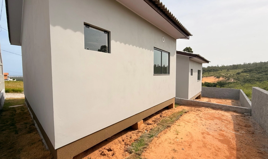 Casa no Residencial Brilho Celeste, no loteamento Rosa de Sharon, na Pedreira no Balneário Rincão com revestimento completo, portas externas em Itauba e internas kit pronto e janelas em vidro e pedra são Gabriel, próximo ao Cechinel material de construção.