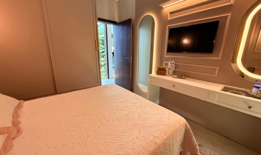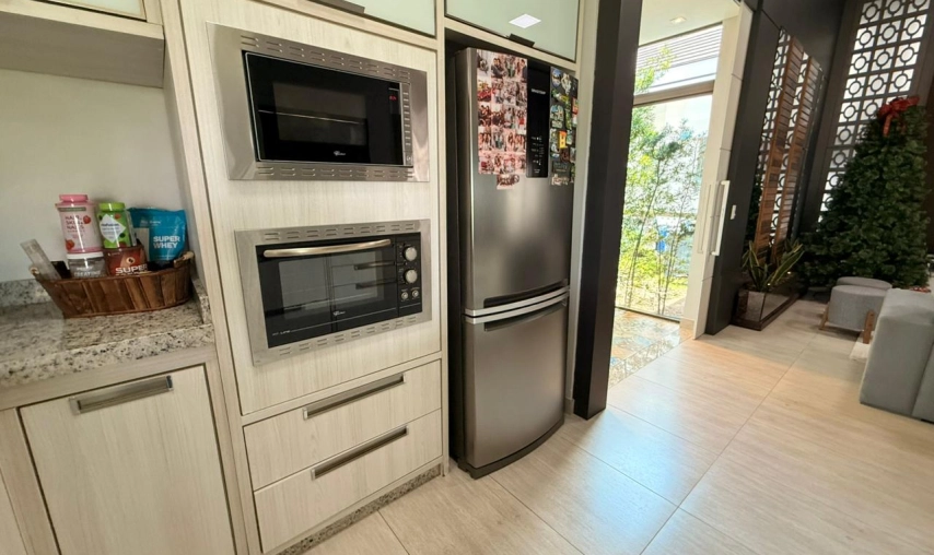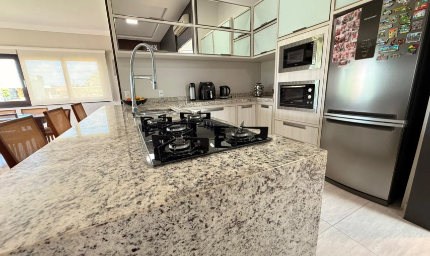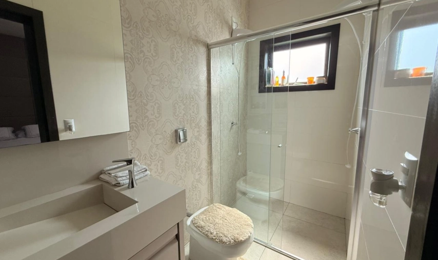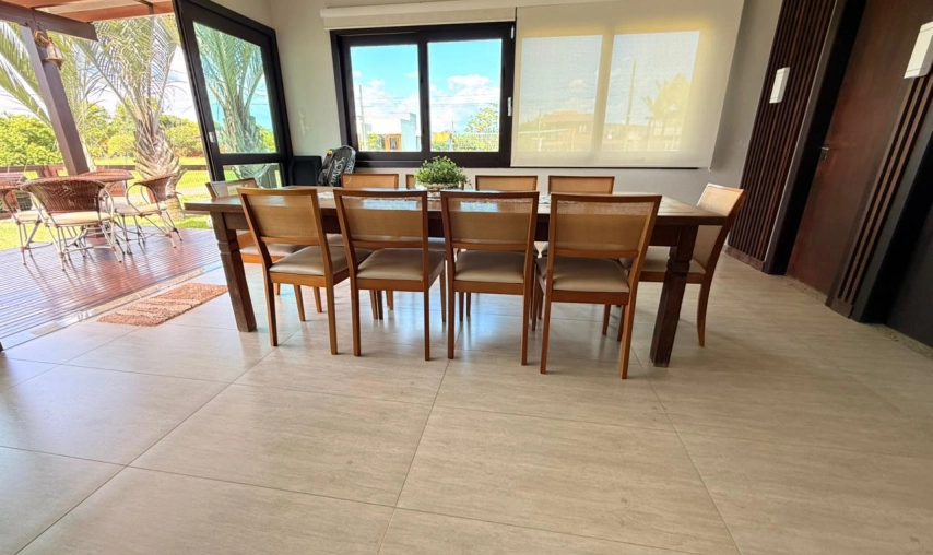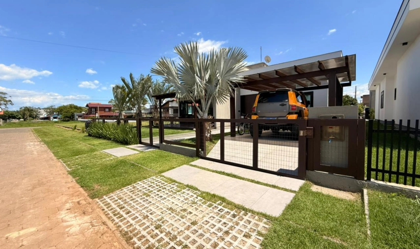 Casa de alvenaria de alto padrão no condomínio Vila Suíça na Lagoa dos Esteves no Balneário Rincão, toda mobiliada, com móveis sob medida, pé direito alto, toda em gesso, com iluminação de led e natural, porta pivotante, espaço gourmet com churrasqueira a carvão,fogão a lenha, pia, lavabo, área de serviço, garagem coberta com pergolado, todos os ambientes climatizados, sendo que no Condomínio Vila Suíça é um loteamento fechado, com forte sistema de segurança, com porteiros e guardas noturnos 24h, infraestrutura diferenciada com quadra de tênis, esportes aquáticos (Jetski, kitesurf, pesca, kayak). Academia funcional, campo de futebol, pista de skate, playground, restaurante, salão para festas.