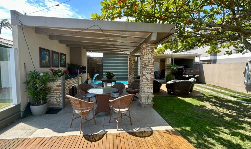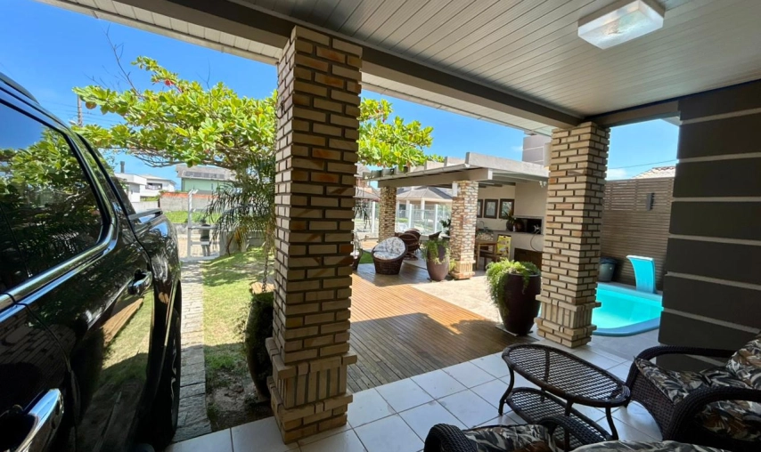 Casa de alto Padrão no Centro de Balneário Rincão, posição da casa frente mar, em rua pavimentada, toda mobiliada, venda com porteira fechada, incluso os eletrodomésticos, eletroeletrônicos, ar condicionados, contendo espaço gourmet com churrasqueira e pia, deck com a piscina com aquecimento, portão eletrônico, próximo a polícia militar, a 04 quadras do mar.