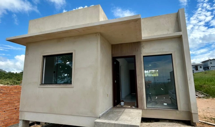 Casa de Alvenaria no loteamento Rosa de Sharon, na Pedreira em Balneário rincão, em rua pavimentada, próximo ao material de construção Cechinel, aceita financiamento bancário.