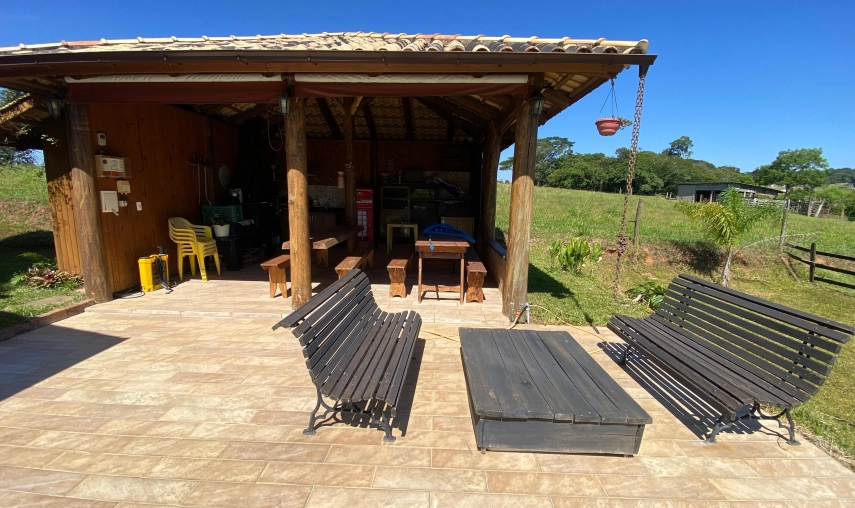 Sitio na Terceira Linha na Içara, com porteira fechada, com 40.000.00m², piscina, 26m² de espaço gourmet, com churrasqueira e lavabo, paiol com 120m², estrebaria 15m², aproveite a tranquilidade de um sítio que oferece refúgio e contato direto com a natureza, ideal para quem busca descanso, ar puro e um estilo de vida mais simples, com opções de lazer ao ar livre